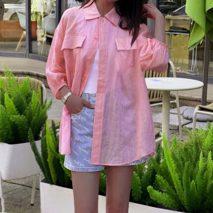 €24.16 - €24.83Rango de precios: desde €24.16 hasta €24.83Camisa holgada de lino y algodón de manga larga de Color sólido con personalidad de moda