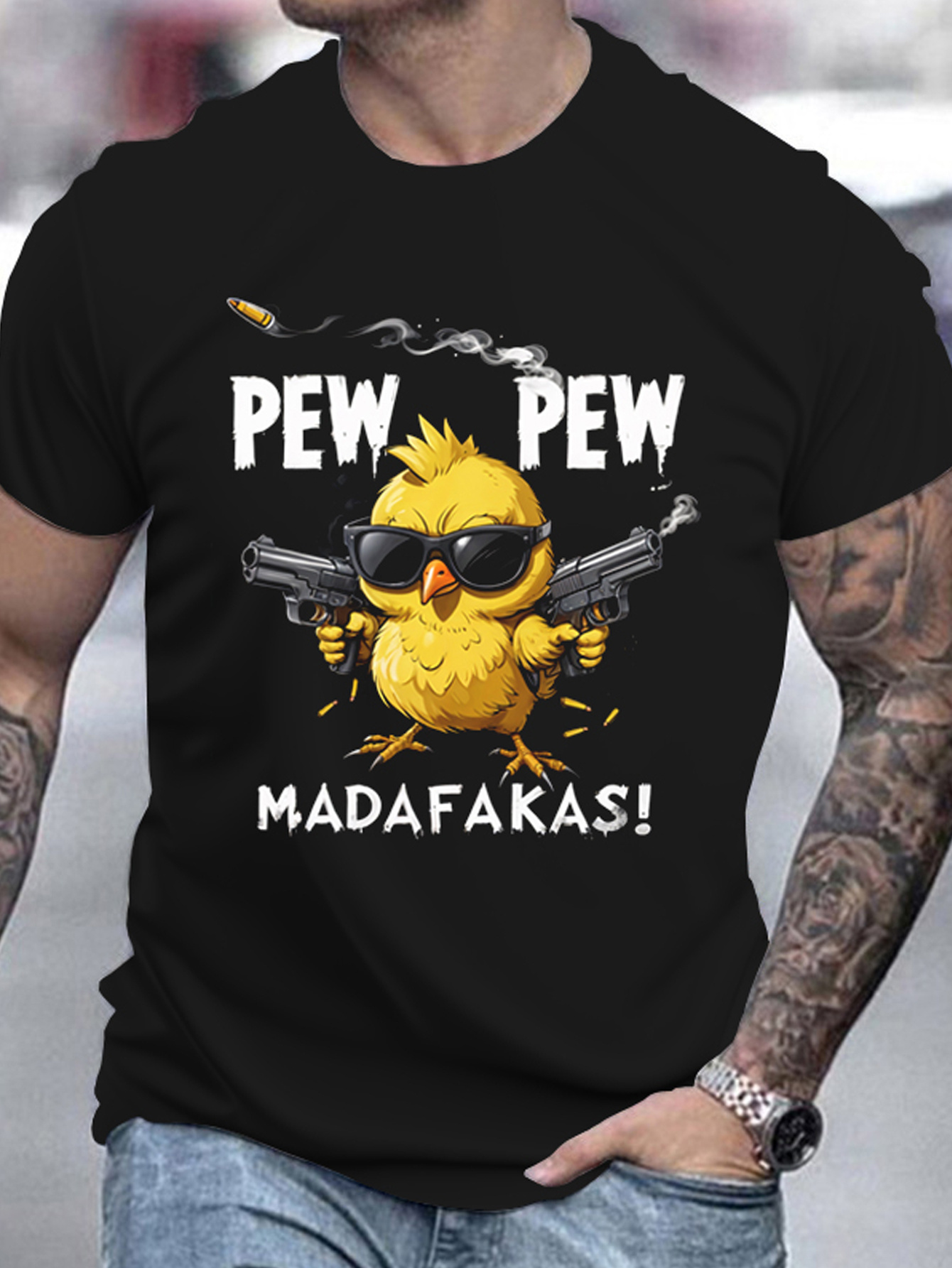 Inicio ROPA camiseta para hombre Camiseta informal de poliéster con estampado de pollo fresco, cuello redondo, mangas cortas, estilo ajustado, top de punto con estampado animal de verano, ligeramente elástico