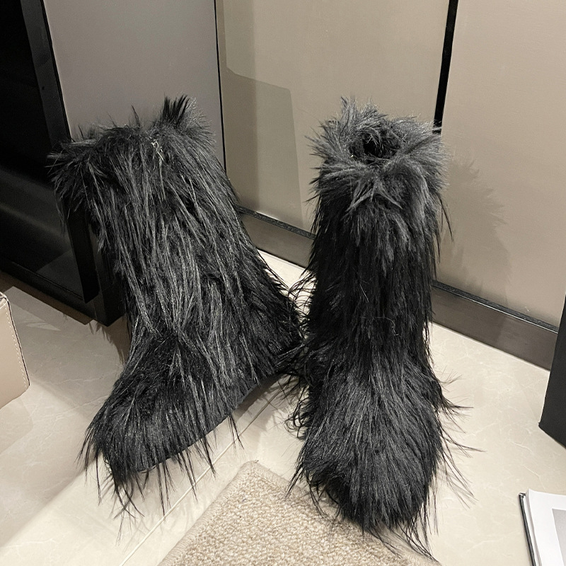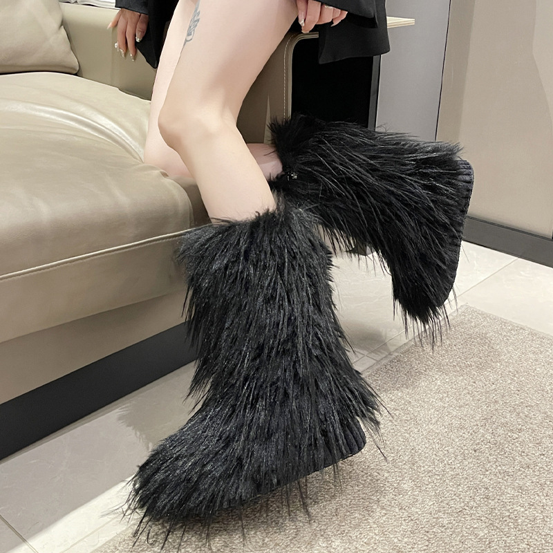 Acogedoras pantuflas suaves de felpa para mujer, zapatos de plataforma antideslizantes con forro de piel sintética, suela silenciosa y ajuste cómodo para uso en interiores, zapatos de plataforma antideslizantes con forro de piel sintética, suela silenciosa y ajuste cómodo para uso en interiores