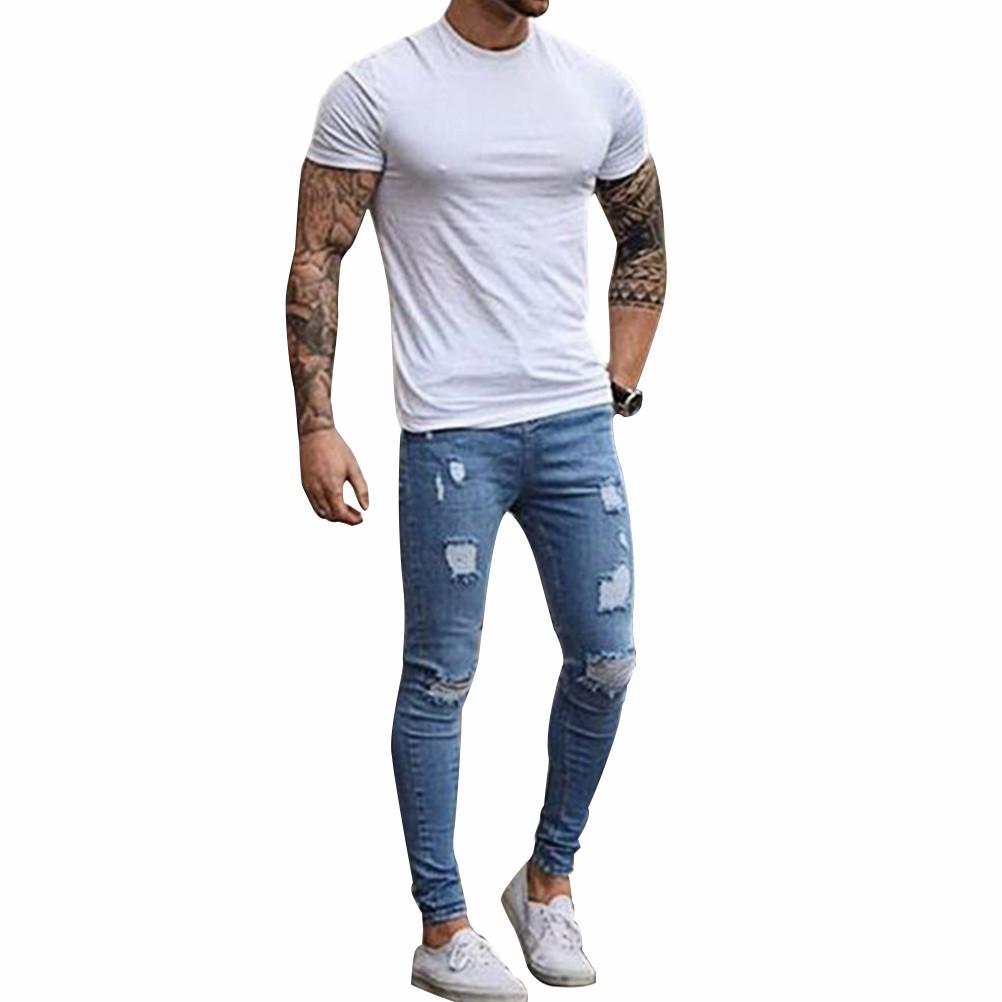Vaqueros ajustados de motociclista rasgados elásticos