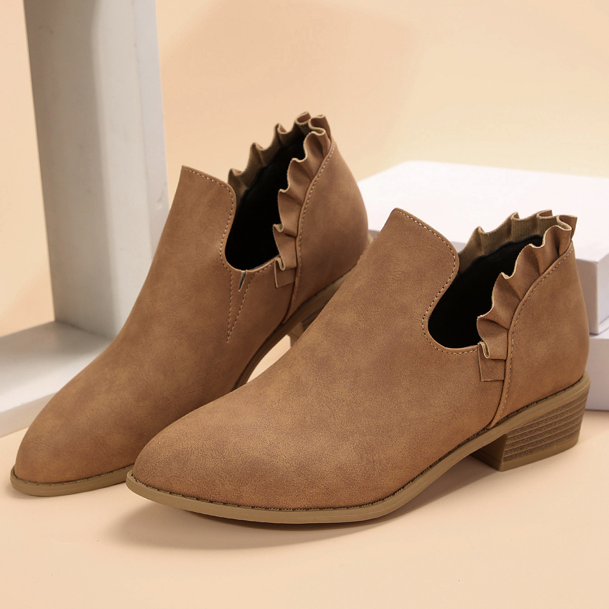 Botines de cuero suave y terciopelo Botines planos Tacón medio Cabeza redonda Chelsea €44.02 - €44.91Rango de precios: desde €44.02 hasta €44.91