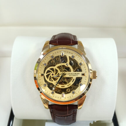 Reloj mecanico con cinturon de cuero hueco para hombre