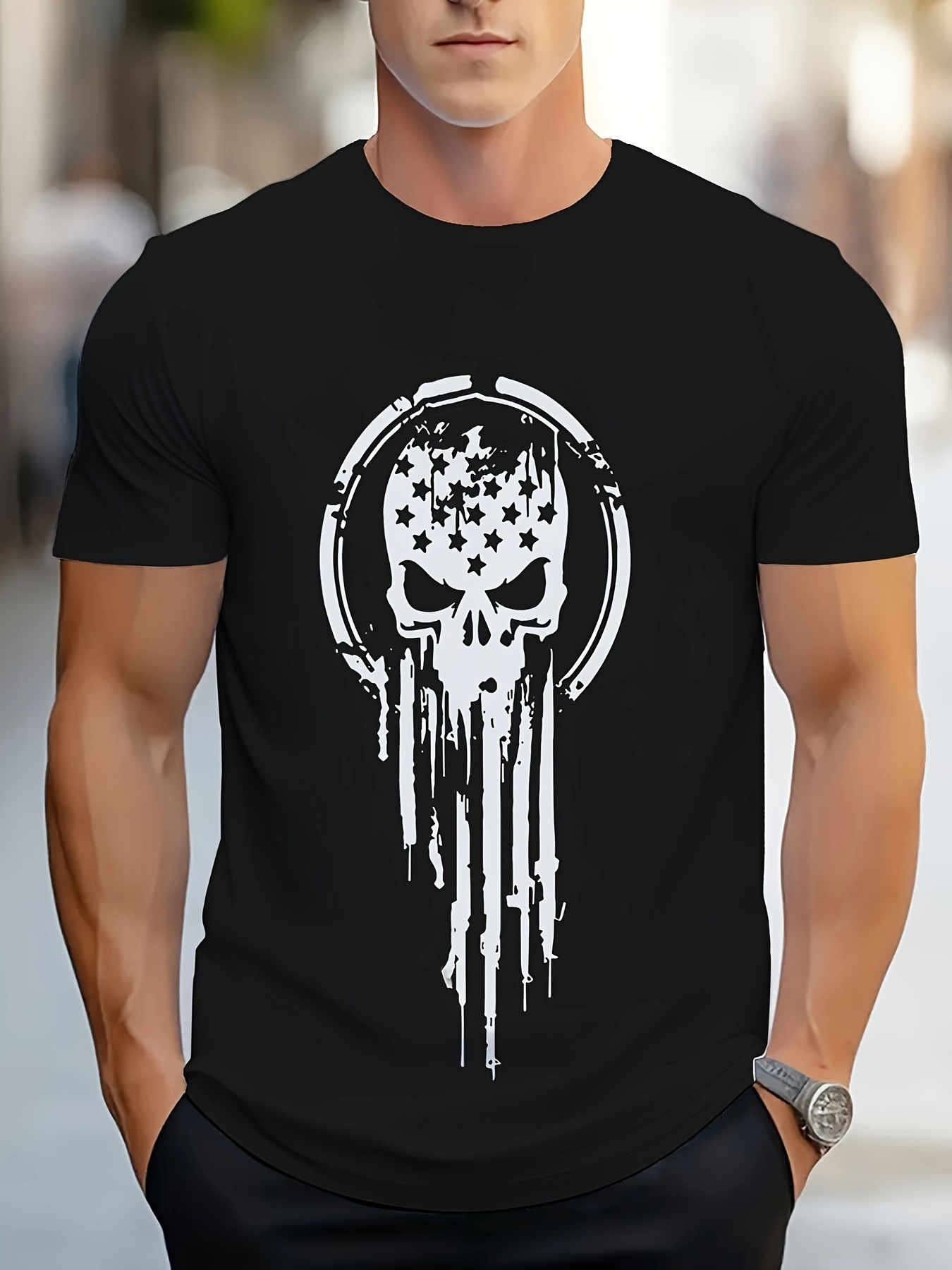Inicio ROPA camiseta para hombre Camiseta con estampado de calavera geométrica, informal y moderna, para hombre: fibra de poliéster transpirable, cuello redondo, estilo regular
